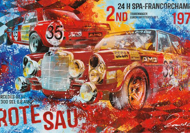 Designs von Bernd Luz zeigen die alten Legenden der Renngeschichten in fantastischen Designs dar. Hier bekommst du dein Teil der Renngeschichte auf einem hochwertigen Handtuch.